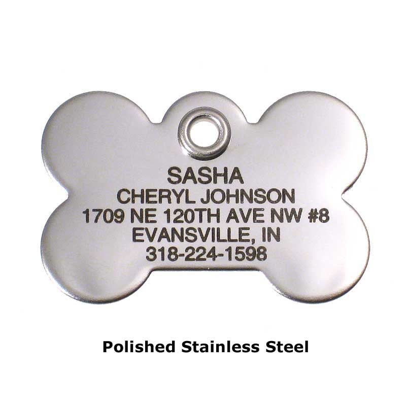 Metal Bone Dog Tag - Matte Finish Stainless Steel -...
