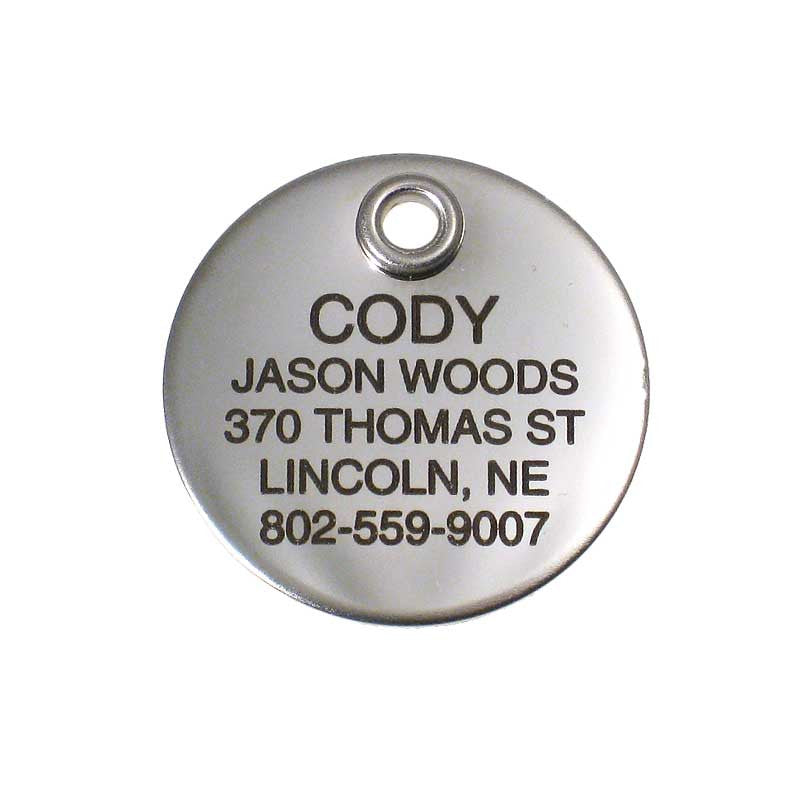 Perhaps our most stylish pet ID tags are a line we call our Enamel Jewelry tags. They are shiny and colorful and provide just the added bling that some pets are looking for! We have several styles and colors and even offer a tiny version of some jewelry name tags (smaller than our small size) which make great ID tags for any smaller pet.