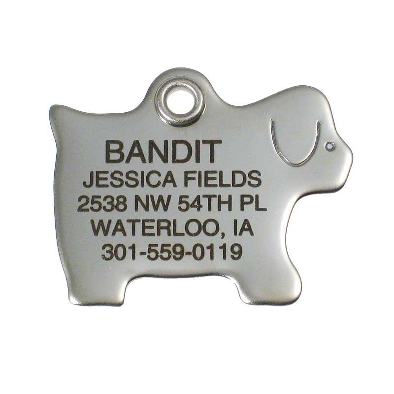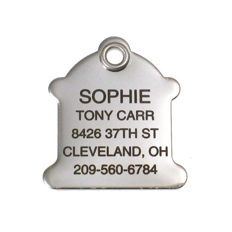 Our stainless steel & polished brass dog tags for pets have been a favorite of customers since we started selling them in 1988. Like our other custom dog ID tags, choose from many fun shapes, including: heart, round, star, house, mouse, rectangle, bone, bow tie, hydrant, dog, cat, tiny oval, and jumbo bone.