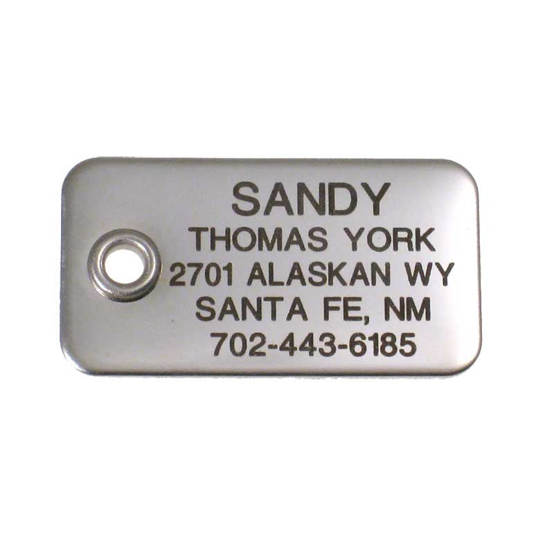 Each of our stainless steel and brass dog tags feature a grommet to reinforce the hole so the tag will last for years for even the most active pets. For lasting engraving, it's best to ensure the engraved side of the tag is not rubbing on other tags, especially other metal dog tags, as rubbing will wear down the engraving more quickly.