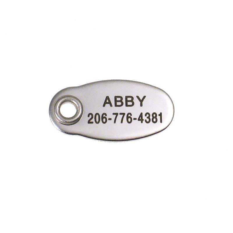 These metal dog tags are laser-engraved with your pet's info on the front of the tag, and have a permanent color-matched reflective sticker on the back of the tag, which serves as a safety reflector for when your pet is in the dark. For optimal reflecting, we recommend you put the tag on so the reflector faces out, and the engraving faces the pet's chest. If someone needs to read the tag they can easily do so by flipping it over.