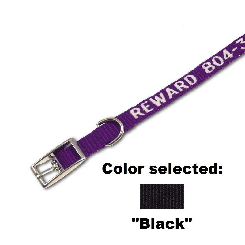 Traditional cat collars are a classic design, and feature durable and comfortable nylon material, complete with a metal buckle on one end and holes on the other so that the collar closes like a belt. These collars are excellent for cats and kittens who don't wear safety collars. Each traditional collar comes complete with a D-ring for attaching cat ID tags, and a rubber o-ring for tucking excess material so that it doesn't flap. Choose from many colors and three sizes! Available with embroidery or without.