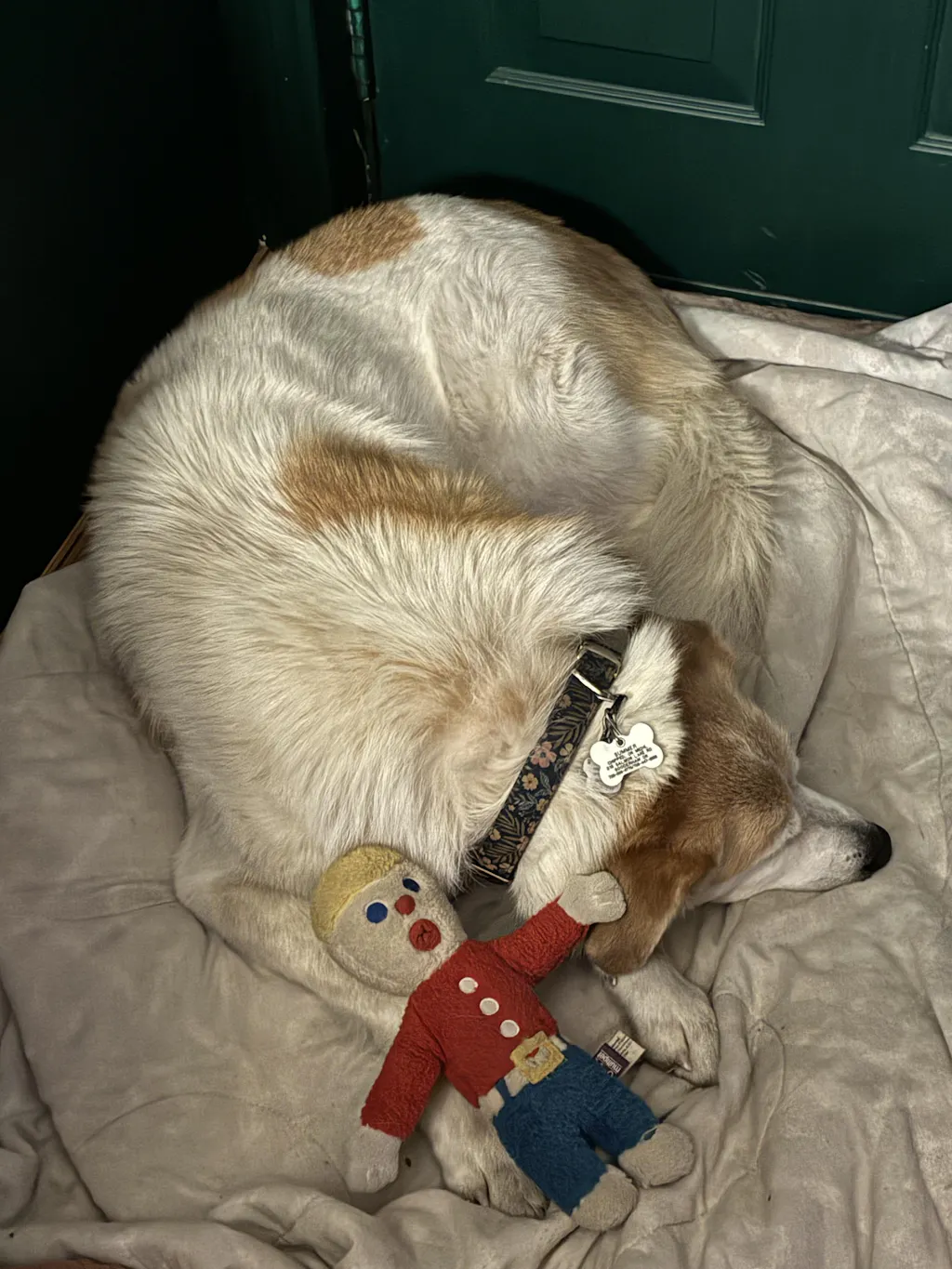 He has also already managed to chew off our phone number. but the lucky pet number is still readable.