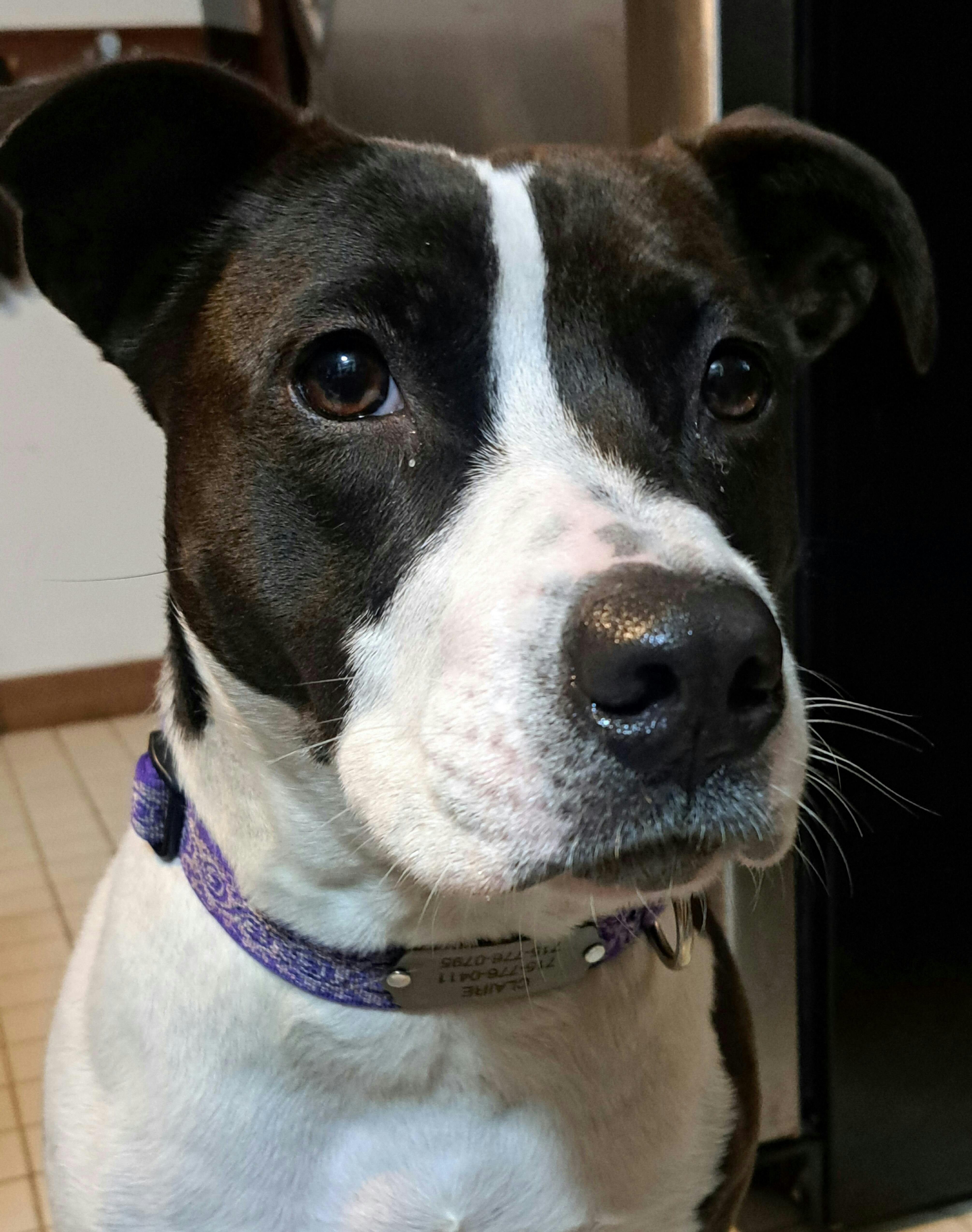 Sadie's tag is size Large on a 1" wide collar.